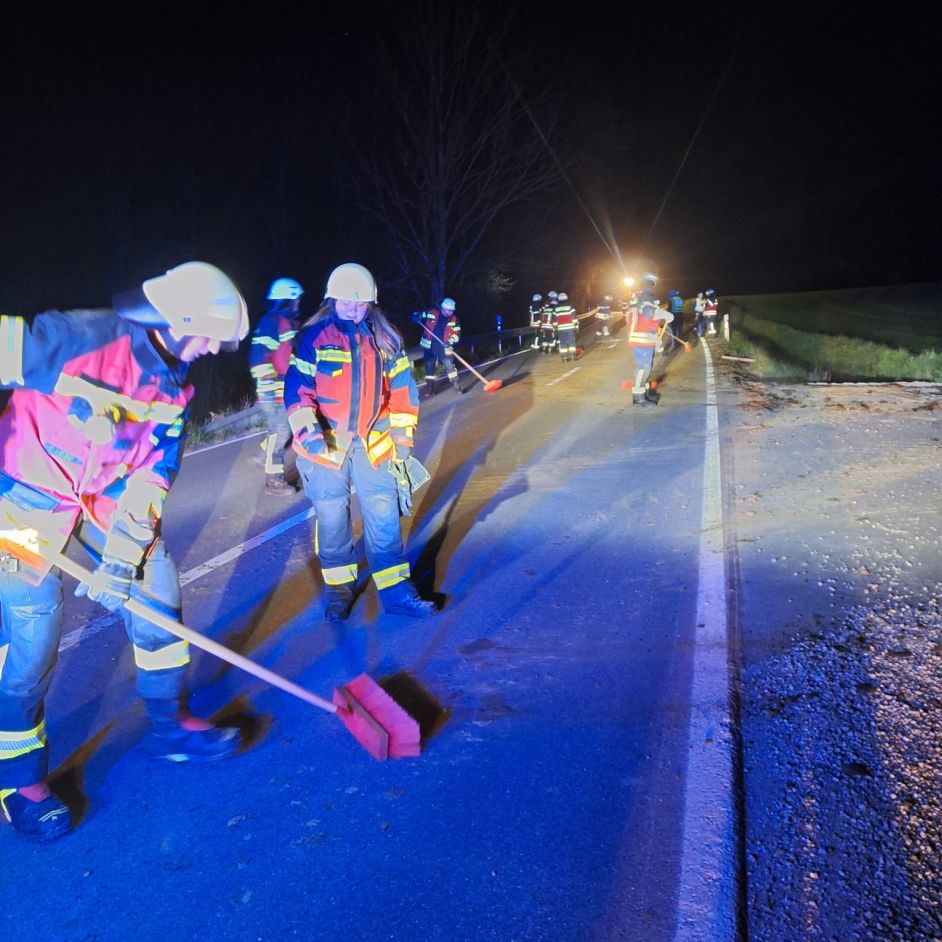Am 05.04.2025 wurden wir um 23:21 Uhr von der Polizei zur technischen Hilfeleistung, Straße reinigen auf der LA27 zwischen Ast und Zweikirchen angefordert.