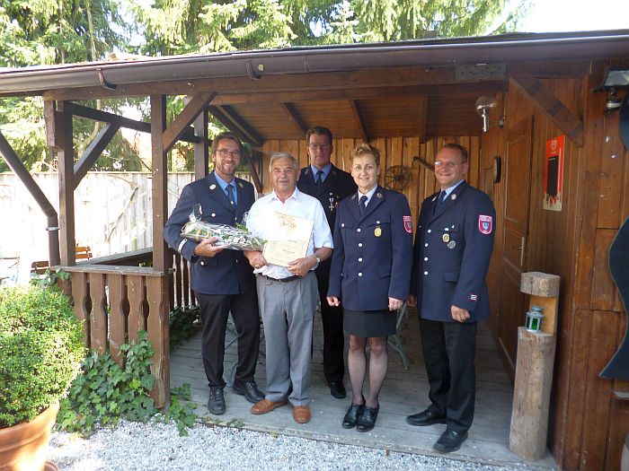 Wenn jemand seit 61 Jahren seiner Feuerwehr als Mitglied die Treue hält, ist das etwas Schönes. Wenn er aber davon ganze 40 Jahre auch aktiv bei Einsätzen dabei war, dann ist es ganz sicher ehrenswert. Und deshalb war es dem Vorstand der Freiwilligen Feuerwehr Ast ein ganz besonderes Vergnügen Herrn Peter Klostermeier sen. zum Anlaß seines 80. Geburtstages die Ehrenmitgliedschaftsurkunde zu überreichen und ihm im Namen aller aktiven und passiven Mitglieder alles Gute zu wünschen.