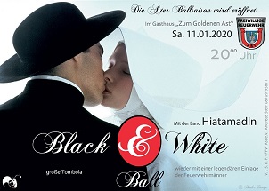 ... bietet der Samstag, den 11.1. die Gelegenheit sich fein anzuziehen, die Tanzschuhe auszupacken und beim Schwarz-Weiß Ball der Freiwilligen Feuerwehr Ast das Parkett zum Glühen zu bringen. Die „Hiatamadln“ spielen bis in der Frühe quer durch ihr Repertoire, von ruhig bis peppig. Für das Rahmenprogramm wurde fleißig an einer Einlage geprobt, die wohl wieder recht lustig wird. Wem es auf der Tanzfläche zu unruhig werden sollte, findet an der gut bestückten Bar sicher ein bequemes Plätzchen. Die diesjährige Tombola verspricht wieder viele schöne Preise.